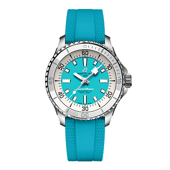 Prestaties en stijl voor al je bezigheden op het water. In de jaren 1960 was de nieuwe duiksport een rage. Voor duikers was timing alles en Breitling stelde alles in het werk om hen het meest duidelijke duikhorloge te geven door alle functies te elimineren die hun levensreddende behoeften onder water niet ondersteunden. Dit afgeslankte horloge kreeg de naam Slow Motion. Wat overbleef waren strakke lijnen, dikke lichtgevende indexen, rechthoekige wijzers en een contrastrijke wijzerplaatring, allemaal gericht op maximale leesbaarheid. Praktisch, ja. Maar waar mensen echt verliefd op werden, was het uiterlijk. De nieuwe Superocean volgt de beroemde ontwerpcodes van de Slow Motion, maar voegt moderne kenmerken toe, zoals een bezel met keramieklaag en felgekleurde wijzerplaten. Brede wijzers en indexen in lichtgevend Super-LumiNova® zorgen voor een goede afleesbaarheid onder water. Het horloge is waterbestendig tot 300 m (1000 ft) en tevens schok-, zand- en zoutwaterbestendig. De bronzen versie maakt gebruik van een speciale legering die uitstekend bestand is tegen corrosie, maar toch na verloop van tijd een subtiel patina zal ontwikkelen dat het horloge nog unieker maakt. De twee bandopties (rubberen en metalen armband) hebben een vouwsluiting die microaanpassingen tot 15 mm mogelijk maakt om het horloge gemakkelijk over rashies en wetsuits te dragen. De krasbestendige keramische lunette zal nooit slijten of vervagen. Voor de veiligheid is de bezel uni-directioneel op de meeste maten en bi-directioneel met een gepatenteerde vergrendeling op de 46 mm. En het beste van alles is dat dit niet langer alleen een duikhorloge is: je kunt ermee surfen, zwemmen, naar de strandbar gaan en uit eten gaan. De Superocean brengt de nostalgie van zijn erfgoed perfect in balans met een frisse nieuwe look.