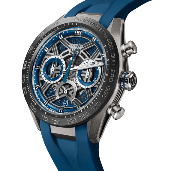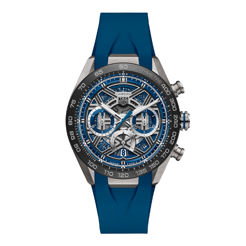 Til uw pols naar een hoger niveau met de TAG Heuer Carrera Chronograph, een eerbetoon aan de spanning van de autosport. Met zijn gedurfde ontwerp en blauwe accenten belichaamt de skeletwijzerplaat de essentie van snelheid en innovatie. Klaar om in stijl voorop te lopen.
