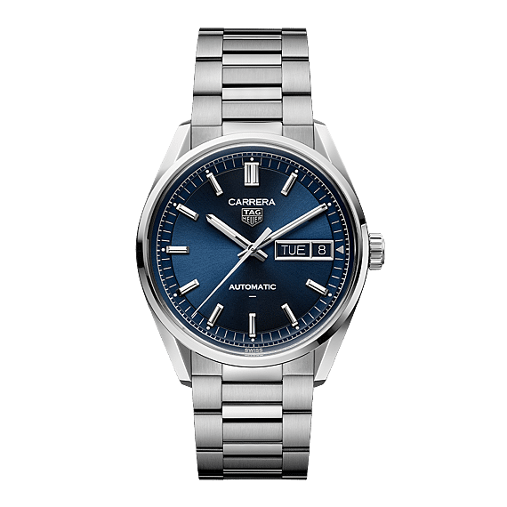 Maak kennis met de TAG Heuer Carrera Day-Date in onze kenmerkende blauwe kleur, voorzien van het TH31-02 uurwerk voor een perfecte combinatie van prestatie en stijl. De geborstelde afwerking met zonnestraalmotief geeft dit iconische ontwerp extra diepte.